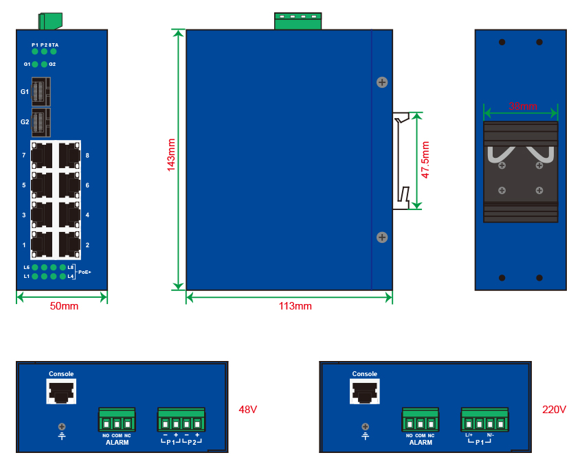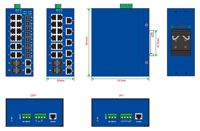 | 百兆光口 | 最多8個百兆光,SC/ST/FC可選 |