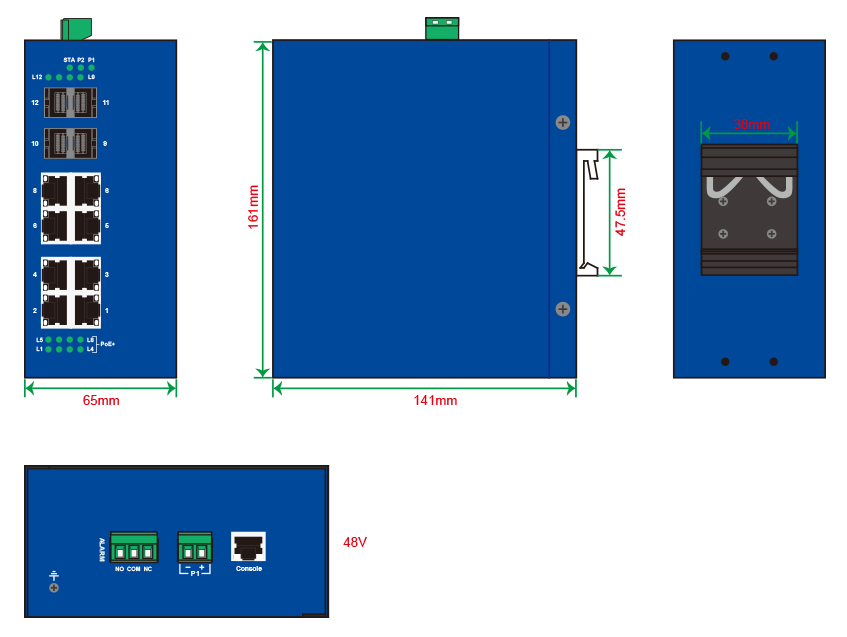 MX8M系列百兆網管型導軌式工業級以太網交換機,滿足IEC61850-3標準,最多支持8個百兆口(最多支持4個光口)。其管理功能齊全,包括QoS 、VLAN 、IGMP Snooping/GMRP、 Port Trunking、SNMP V1/V2/V3、RSTP/STP等。獨有的RingGo冗余環網協議,網絡鏈路切換及恢復時間小于20ms,提高了網絡的可靠性。冗余電源輸入,寬溫設計,強抗電磁干擾能力,可廣泛應用于工業現場。