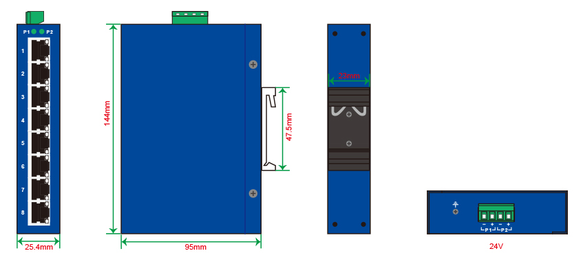 | 尺寸 | 25.4(W) x 144(H) x 95(D) mm |