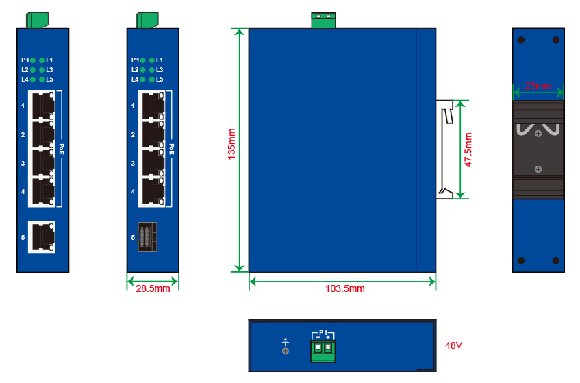 MX5E- 5T是一款緊湊型百兆非網管工業以太網交換機,支持5個百兆電口。支持IEEE802.3/802.3u/802.3x,10/100M,全/半雙工,MDI/MDI-X自適應RJ45端口。導軌安裝,24V電壓輸入,并提供過載和反接保護。可選寬溫型號(-40 ~ +75℃),強抗電磁干擾能力,完全滿足苛刻的工業應用環境,為工業現場提供經濟可靠的網絡接入。